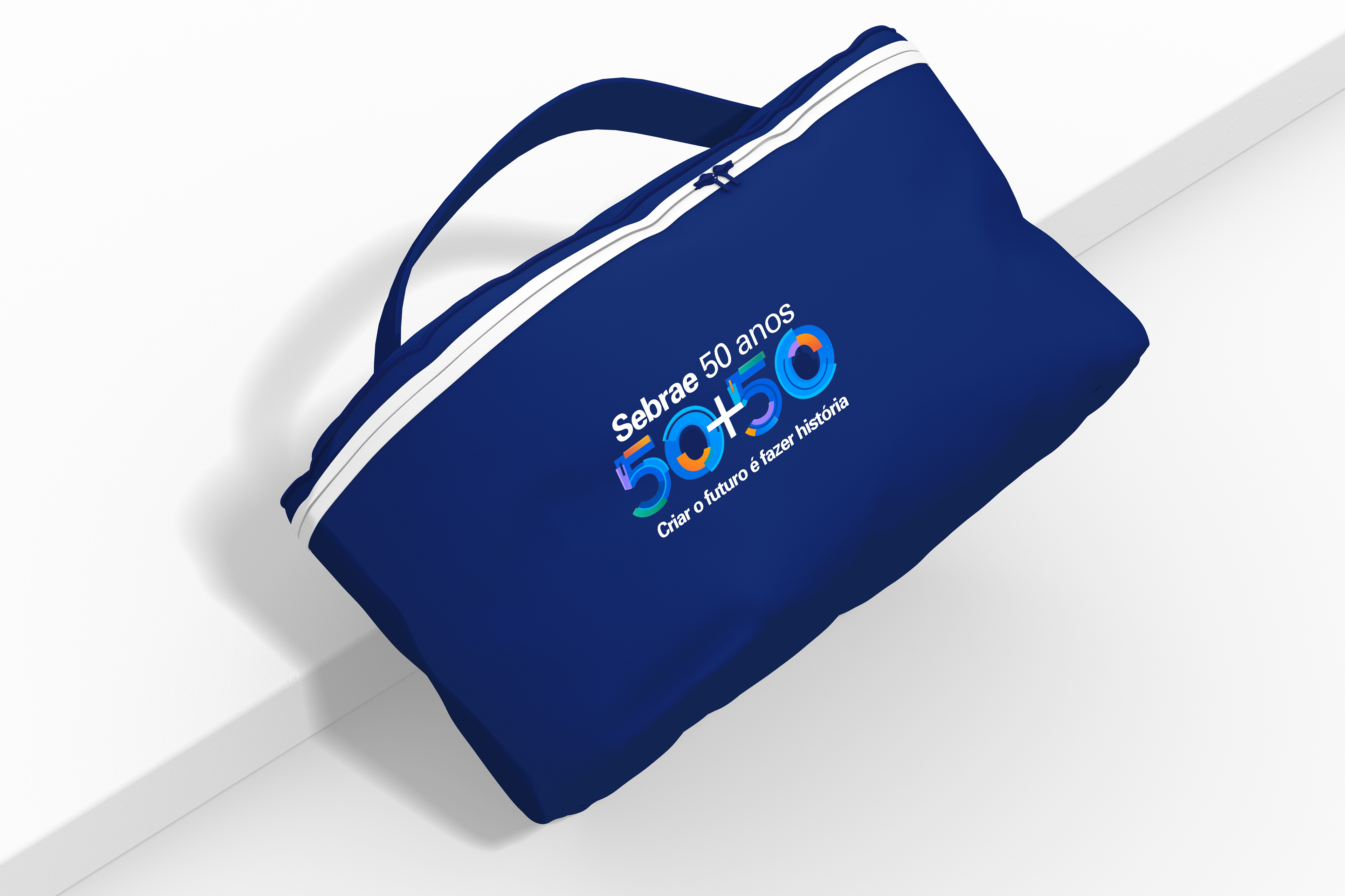 Trabalho para o SEBRAE, realizado por meio da Startup Inspiral: Bolsa Térmica básica, com limitação de uma cor de tecido e trabalho na logo festiva monocromática.